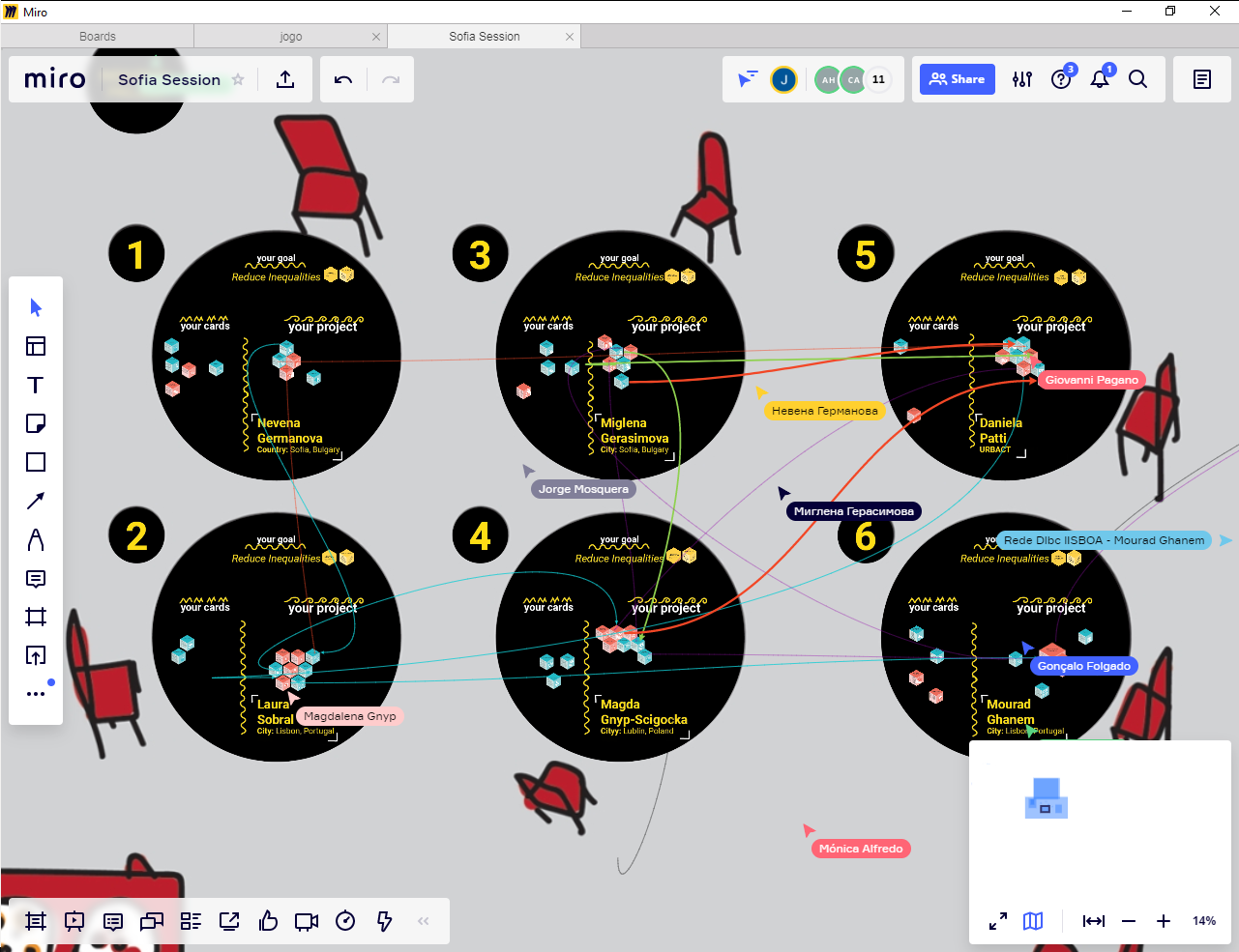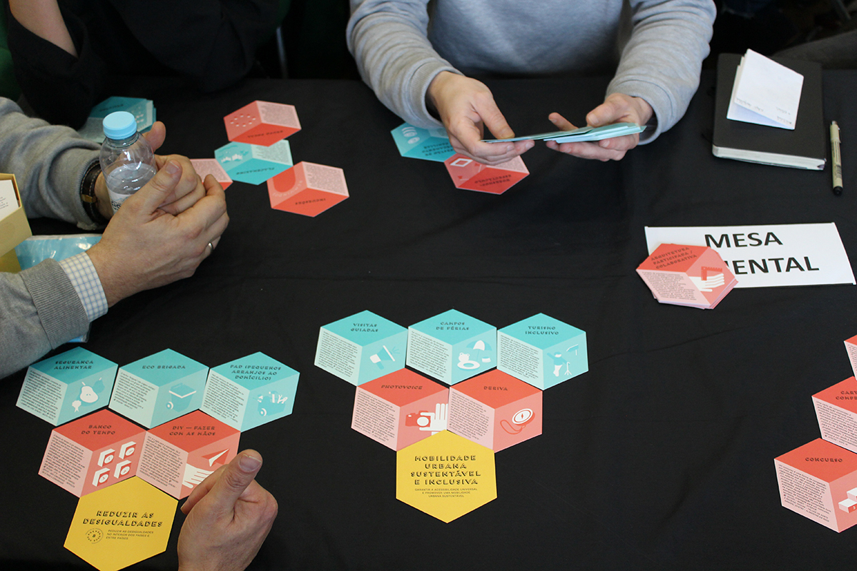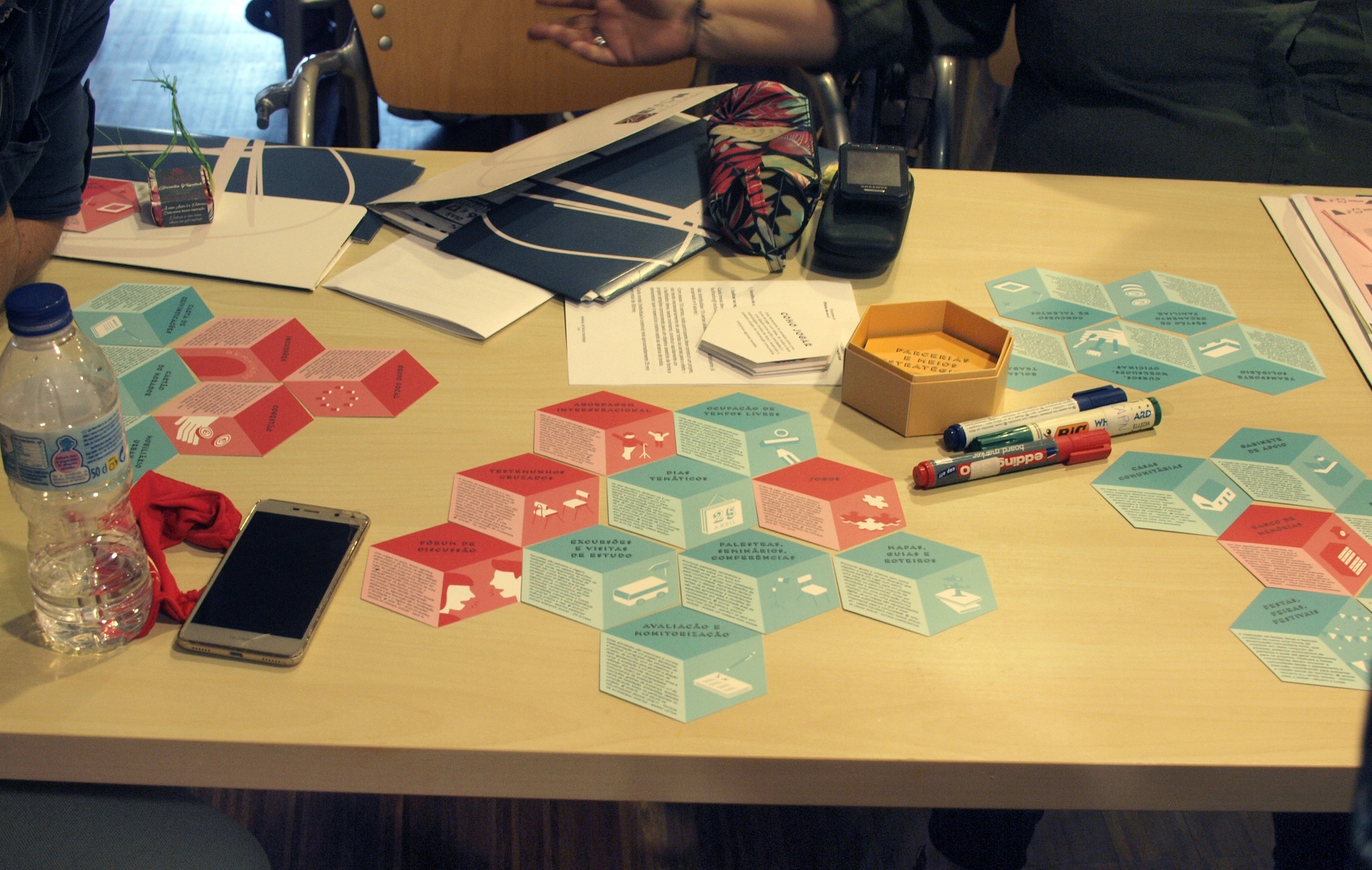 Metodologias e ações são divididas entre jogadores. Para cada carta-metodologia lançada, o jogador seguinte deve ripostar com uma carta-ação, que dê coerência à primeira (por exemplo: se a metodologia for ‘mapeamento coletivo’, a ação sugerida pode passar por uma ‘visita guiada’ para conhecimento do território). Estratégia aceite e passa-se para a carta seguinte.