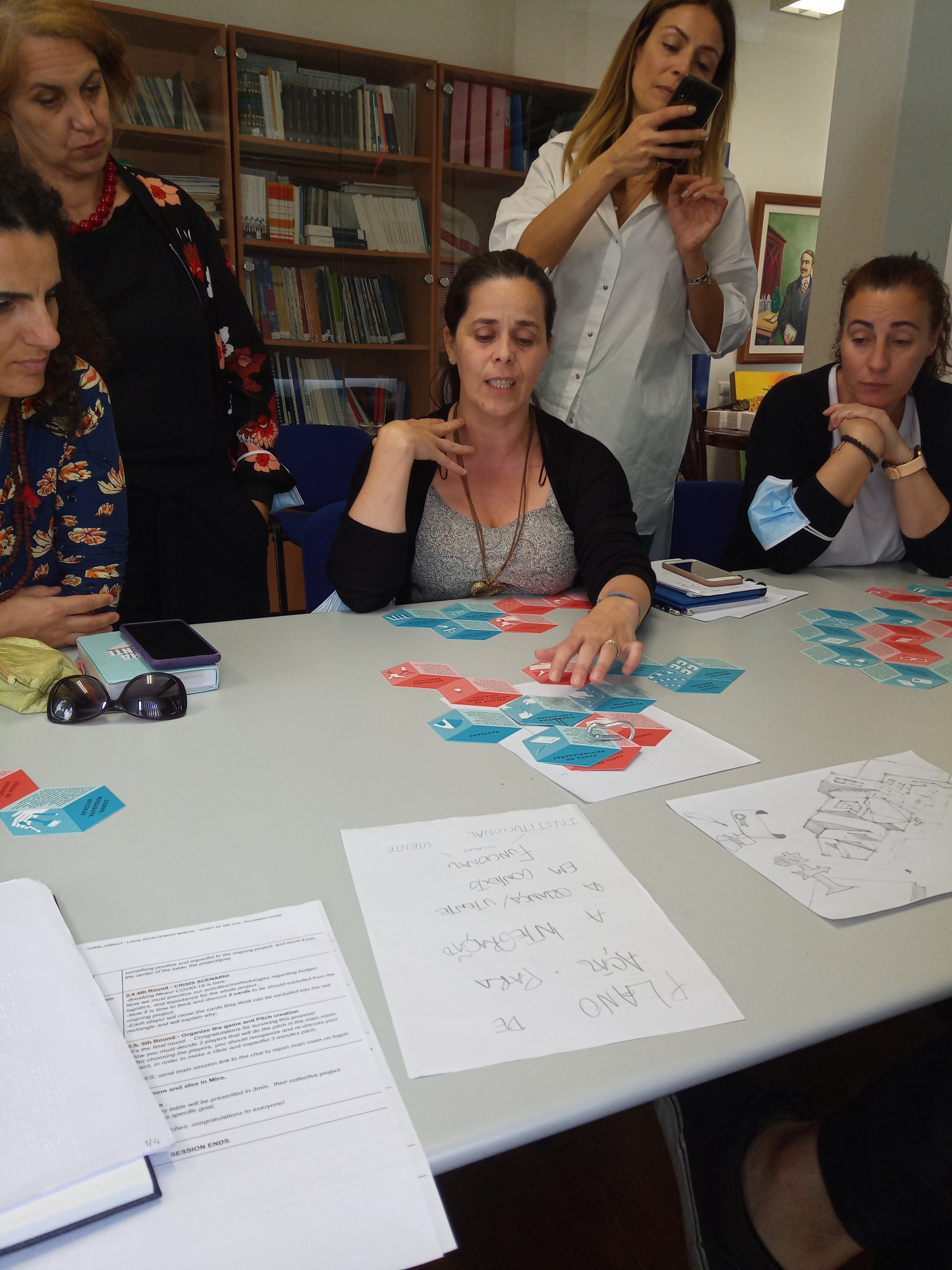 Colocar todas as cartas viradas para baixo, com os objetivos para cima. Em cada turno, cada jogador escolhe 1 carta-ação e 1 carta-metodologia tentando construir uma estratégia para responder ao desafio da carta-objetivo escolhida por todos. Se a estratégia apresentada foi aceite pelo grupo, o jogador ganha 1 ponto. Quem pontua mais ganha. O jogo termina com o emparelhamento de todas as cartas.